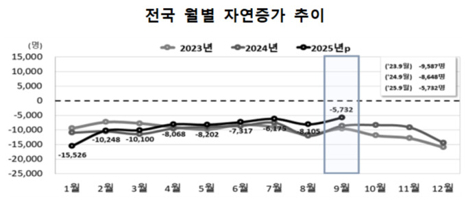 1~9월 누계 기준으로는 7만9471명 자연 감소했다.