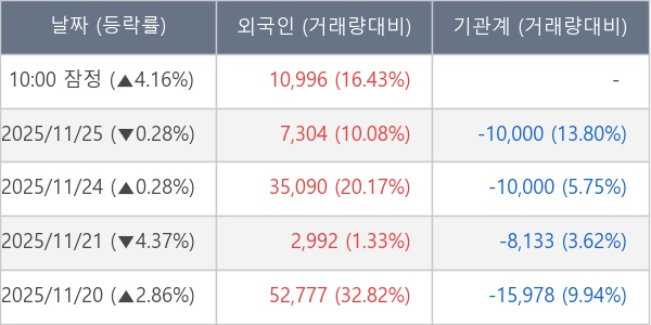 [표] 외국인ㆍ기관 순매매량 (단위 주)