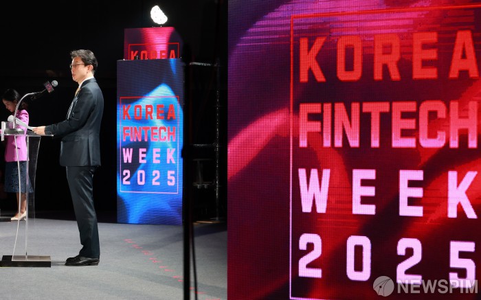 [서울=뉴스핌] 김학선 기자 = 이억원 금융위원장이 26일 서울 양재 aT센터에서 열린 '제7회 코리아 핀테크 위크 2025' 개막행사에 환영사를 있다. 올해는 'K-핀테크 30 선정식'을 비롯해 세미나·부대행사 등 다양한 프로그램으로 구성돼 최대 규모로 진행된다. 2025.11.26 yooksa@newspim.com