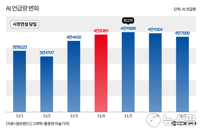 11월4일 첫 시정연설서 AI 언급 직후 약 5만건