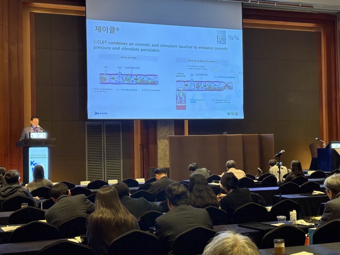 | JW중외제약은 지난 23일 롯데호텔 서울에서 열린 한국건강검진학회 추계학술대회에서 정제형 대장정결제 '제이클 정' 심포지엄을 개최했다. 제이클 정의 약효와 안전성, 복약 순응도를 공유하기 위해 마련된 이번 심포지엄에는 내과 전문의를 비롯한 의료진이 참석했다. [사진=JW중외제약] |