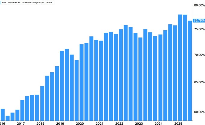 브로드컴의 분기별 매출총이익률 추이 [자료=코이핀]