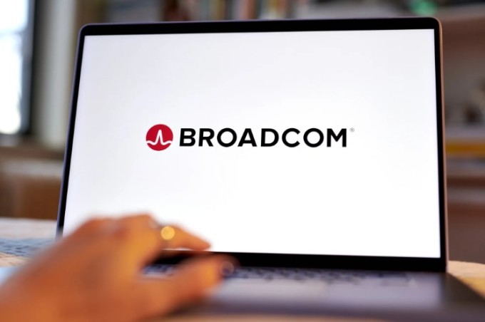 노트북 화면에 비친 브로드컴 로고 [사진=블룸버그통신]