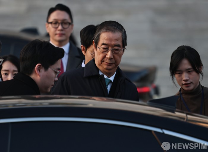 [서울=뉴스핌] 류기찬 기자 = 한덕수 전 국무총리가 26일 오후 서울 서초구 서울중앙지법에서 열린 내란 방조 및 내란 중요임무 종사 혐의 관련 결심공판을 마친 뒤 법원을 나서고 있다. 2025.11.26 ryuchan0925@newspim.com