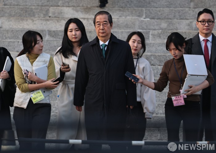 [서울=뉴스핌] 류기찬 기자 = 한덕수 전 국무총리가 26일 오후 서울 서초구 서울중앙지법에서 열린 내란 방조 및 내란 중요임무 종사 혐의 관련 결심공판을 마친 뒤 법원을 나서고 있다. 2025.11.26 ryuchan0925@newspim.com