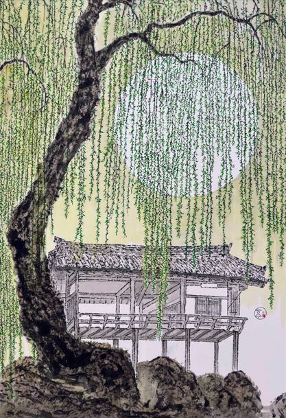 [서울=뉴스핌]이영란 미술전문기자=2025아트바젤 마이애미비치에 한국의 리안갤러리가 선보이는 박대성화백의 작품. Park Dae-Sung),Willow Pavilion(Yu Roo)2, 2024, Ink and color on paper, 192x130cm. [사진-리안갤러리] 2025.11.27 art29@newspim.com