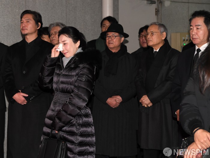 [서울=뉴스핌] 류기찬 기자 = 연예계 동료들이 27일 오전 서울 송파구 서울아산병원 장례식장에서 엄수된 고(故) 이순재의 발언식에서 고인의 마지막 길을 배웅하고 있다. 2025.11.27 ryuchan0925@newspim.com