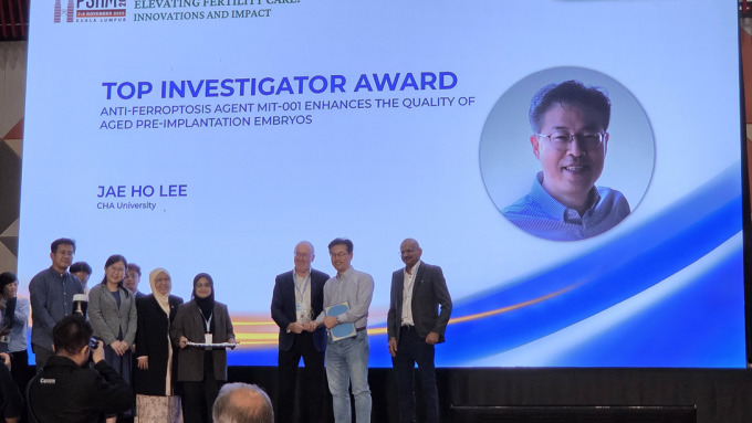 [서울=뉴스핌] 조준경 기자 = '차 여성의학연구소 서울역(원장 윤태기)'은 기초의학연구실 이재호 교수가 2025 환태평양생식의학회(PSRM, The Pacific Society for Reproductive Medicine)에서 '노화된 배아의 질 개선에 도움이 되는 '페롭토시스' 표적 항노화 치료제' 연구로 최우수 논문상을 수상했다고 27일 밝혔다.