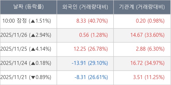 ※ 사모펀드 등 일부 기관의 순매매량은 표시되지 않음