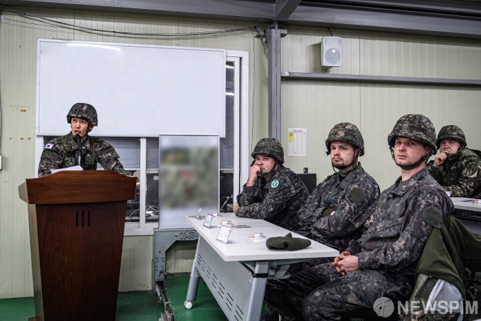 [서울=뉴스핌] 육군은 지난 12일부터 27일까지 방산협력국 3개국 21명의 장병을 대상으로 '25-4기 육군 국제과정' 을 진행해 다양한 K-무기체계와 교육·훈련체계의 우수성을 알렸다고 27일 밝혔다. 사진은 국제과정 참가자들이 포병학교에서 진행된 K9자주포 실습 간 장비운영 설명 및 토의를 진행하는 모습. [사진=육군] 2025.11.27 photo@newspim.com