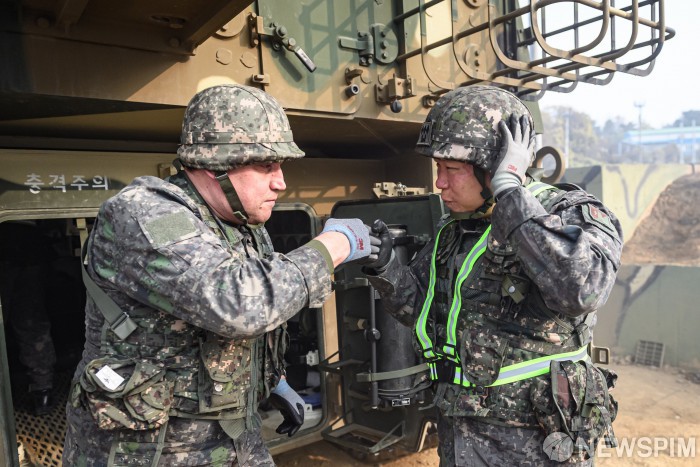 [서울=뉴스핌] 육군은 지난 12일부터 27일까지 방산협력국 3개국 21명의 장병을 대상으로 '25-4기 육군 국제과정' 을 진행해 다양한 K-무기체계와 교육·훈련체계의 우수성을 알렸다고 27일 밝혔다. 사진은 국제과정에 참가한 외국군과 한국군 운영요원이 주먹을 맞대며 서로를 응원하고 있는 모습. [사진=육군] 2025.11.27 photo@newspim.com