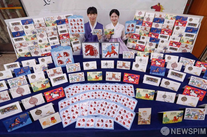 [서울=뉴스핌] 류기찬 기자 = 우정사업본부가 2026년 병오년(丙午年) ‘붉은 말의 해’를 맞아 27일 오전 서울 중구 서울중앙우체국 우표박물관에서 ‘2026 병오년(丙午年)’ 연하우표‧연하카드를 공개하고 있다. 2025.11.27 ryuchan0925@newspim.com