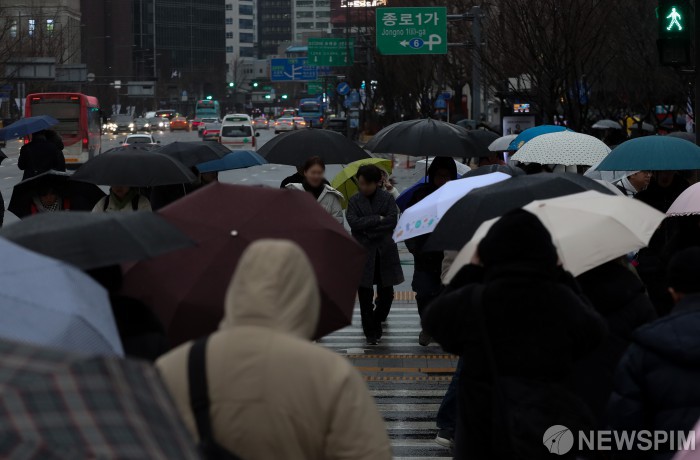 [서울=뉴스핌] 고다연 기자 = 27일 오후, 전국 곳곳에 비와 눈이 오는 가운데 밤에는 그칠 전망이다. 강원 산지와 강원북부내륙는 대설특보가 발효돼 오늘 많은 눈이 오겠다.