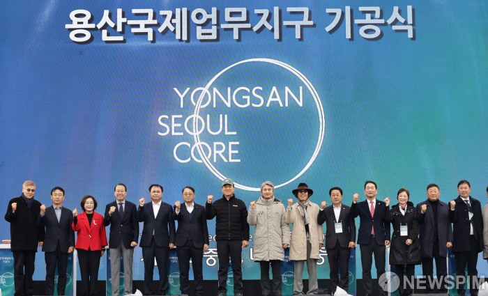 [서울=뉴스핌] 양윤모 기자 = 오세훈 서울시장이 27일 오후 서울 용산구 한강로21 용산국제업무지구 현장에서 개최된 '용산국제업무지구 기공식'에서 참석자들과 기념촬영을 하고 있다. 서울주택도시개발공사(SH)와 코레일은 용산국제업무지구 도시개발사업과 관련해 "용산정비창 부지를 서울의 미래 경쟁력을 강화할 핵심 거점이자 글로벌 업무 중심지로 재탄생시키는 프로젝트"라고 설명했다. 행사에는 정정래 코레일 사장 직무대행,권영세 국민의힘 국회의원,박희영 용산구청장,일반시민 등이 참석했다. 2025.11.27 yym58@newspim.com