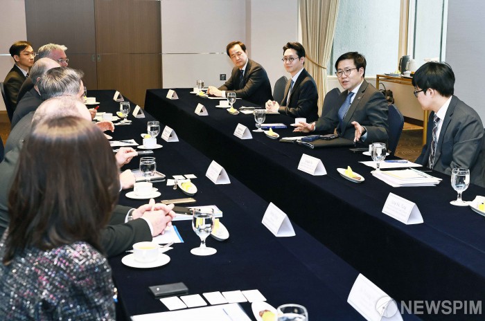 [서울=뉴스핌] 여한구 산업통상부 통상교섭본부장이 27일 서울 중구 롯데호텔에서 열린 주한유럽상공회의소(ECCK) 및 주한 EU 기업 간담회에서 발언하고 있다. [사진=산업통상부] 2025.11.27 photo@newspim.com