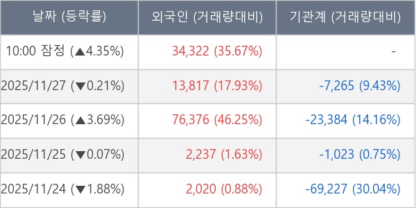 [표] 외국인ㆍ기관 순매매량 (단위 주)