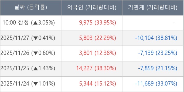 [표] 외국인ㆍ기관 순매매량 (단위 주)