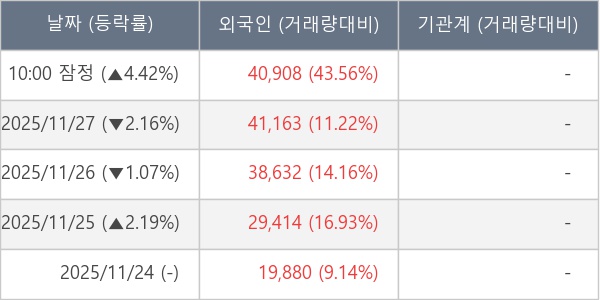 [표] 외국인ㆍ기관 순매매량 (단위 주)