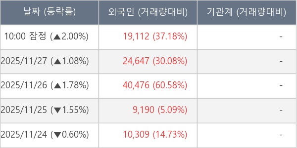 [표] 외국인ㆍ기관 순매매량 (단위 주)