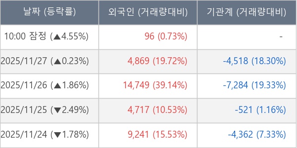 [표] 외국인ㆍ기관 순매매량 (단위 주)
