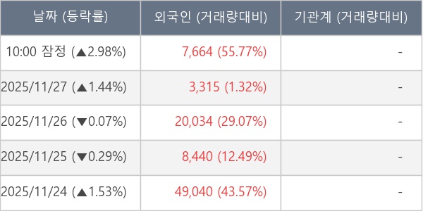 [표] 외국인ㆍ기관 순매매량 (단위 주)