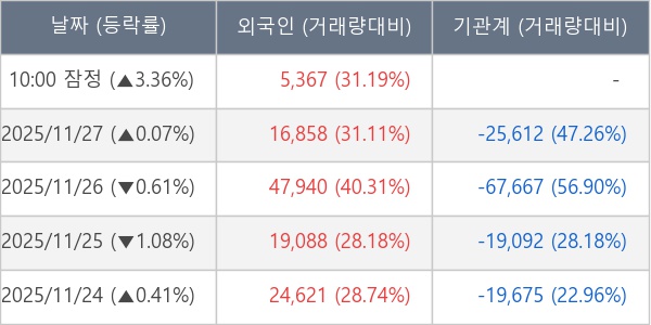 [표] 외국인ㆍ기관 순매매량 (단위 주)