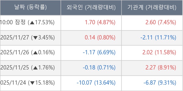 ※ 사모펀드 등 일부 기관의 순매매량은 표시되지 않음