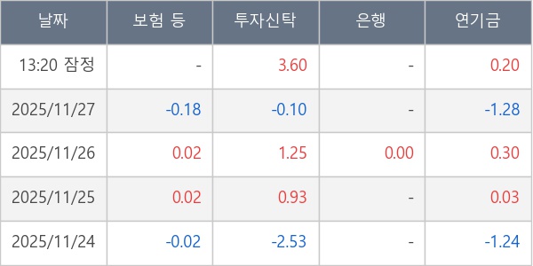[표] 주요 기관별 순매매량 (단위 만주)