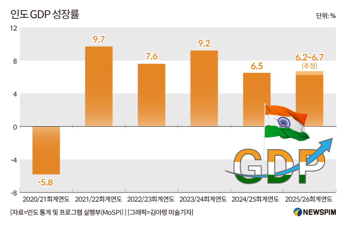 인도 정부는 "현 회계연도(2025/26회계연도, 2025년 4월~2026년 3월) 상반기(4~9월) 실질 GDP는 전년 동기 대비 8.0% 성장했다"며 "이는 작년 같은 기간의 6.1%에서 큰 폭으로 늘어난 것"이라고 설명했다.