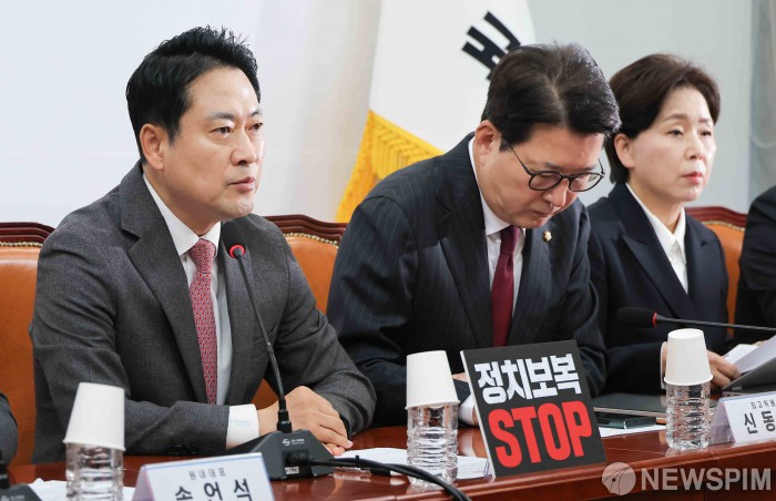 [서울=뉴스핌] 윤창빈 기자 = 장동혁 국민의힘 대표가 1일 서울 여의도 국회에서 열린 최고위원회의에서 모두발언을 하고 있다. 2025.12.01 pangbin@newspim.com