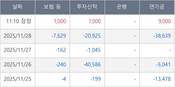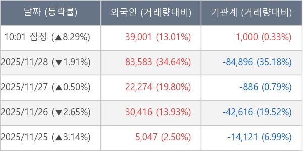 ※ 사모펀드 등 일부 기관의 순매매량은 표시되지 않음