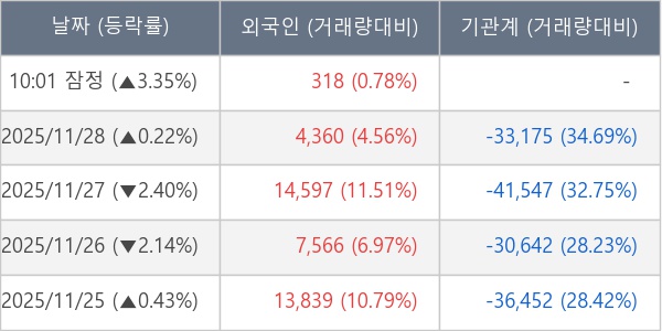 [표] 외국인ㆍ기관 순매매량 (단위 주)