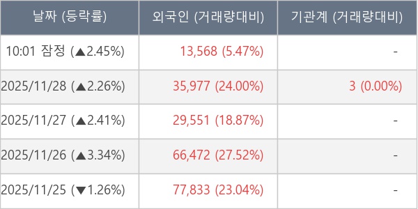 [표] 외국인ㆍ기관 순매매량 (단위 주)