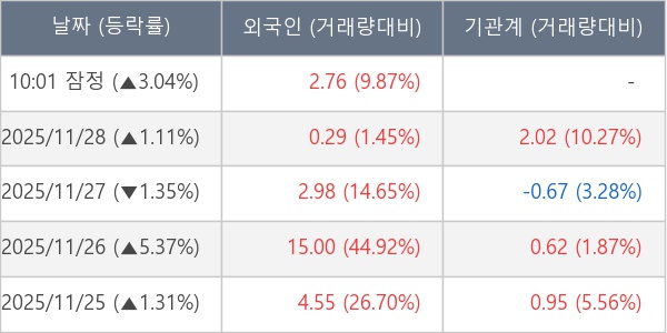 [표] 외국인ㆍ기관 순매매량 (단위 만주)