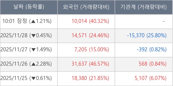 [표] 외국인ㆍ기관 순매매량 (단위 주)