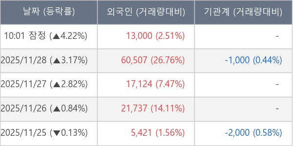 [표] 외국인ㆍ기관 순매매량 (단위 주)
