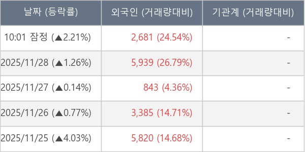 [표] 외국인ㆍ기관 순매매량 (단위 주)