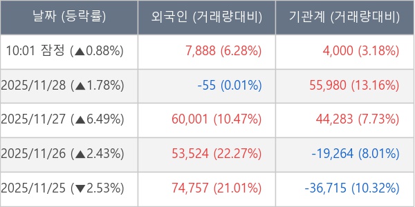 ※ 사모펀드 등 일부 기관의 순매매량은 표시되지 않음