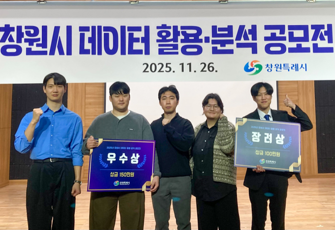 [창원=뉴스핌] 남경문 기자 = 경남대학교가 창원시가 주최한 '2025 창원시 데이터 활용·분석 공모전'에서 분석 부문 우수상과 장려상을 받았다.
