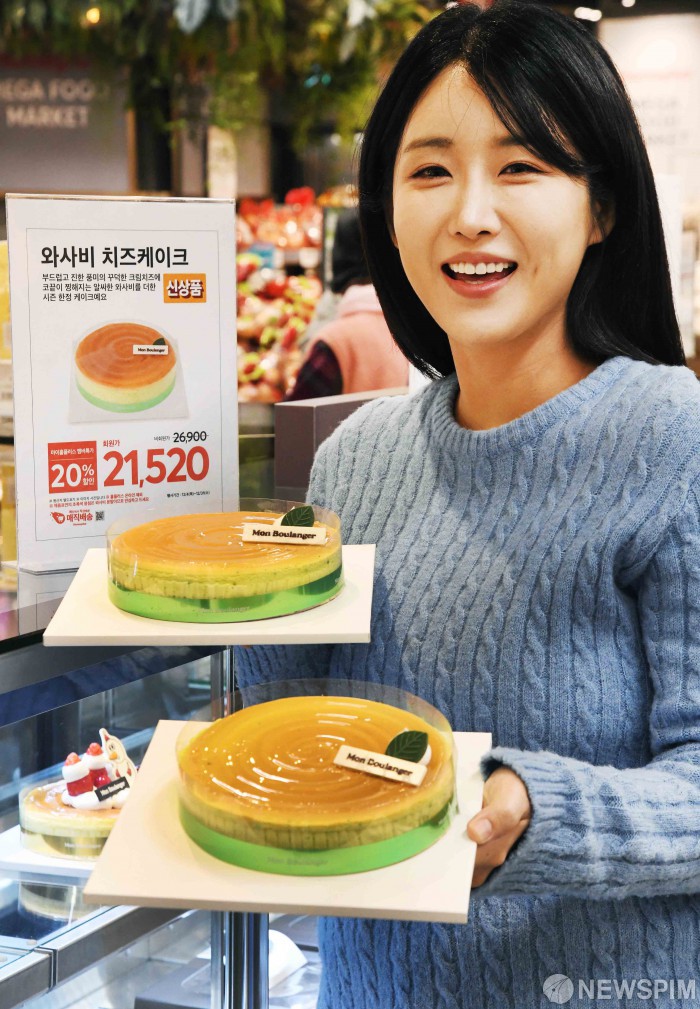 [서울=뉴스핌] 홈플러스가 2일 메가 푸드 마켓 라이브 강서점에서 신제품 ‘와사비 치즈케이크’를 소개하고 있다. 900개 한정 출시하는 ‘와사비 치즈케이크’는 진한 풍미의 크림치즈 케이크에 와사비의 은은한 알싸함이 더해져 색다른 맛의 조화를 느낄 수 있는 제품이다. [사진=홈플러스] 2025.12.02 photo@newspim.com