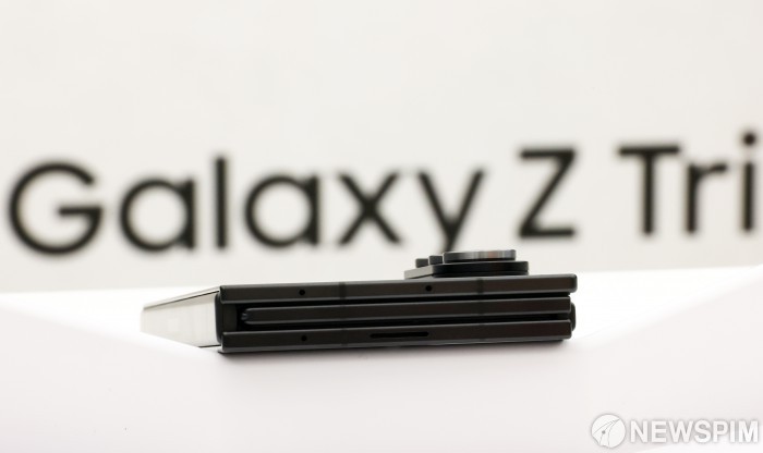 [서울=뉴스핌] 최지환 기자 = 2일 오전 서울 서초구 삼성 강남에서 열린 삼성전자 갤럭시 Z 트라이폴드 출시 미디어데이에 갤럭시 Z 트라이폴드가 전시되어 있다. 2025.12.02 choipix16@newspim.com