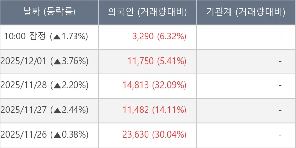 [표] 외국인ㆍ기관 순매매량 (단위 주)