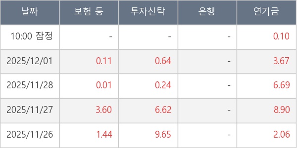 [표] 주요 기관별 순매매량 (단위 만주)