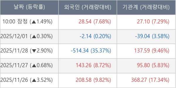 ※ 사모펀드 등 일부 기관의 순매매량은 표시되지 않음