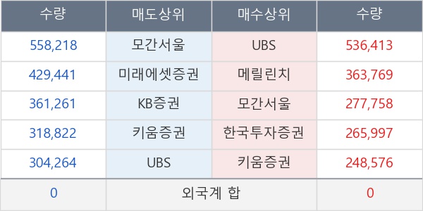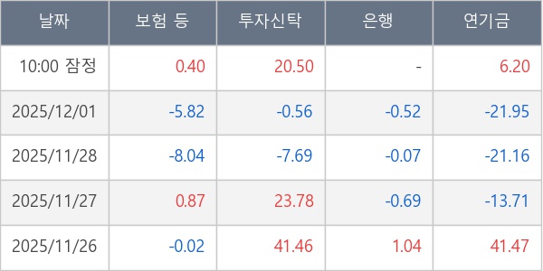 [표] 주요 기관별 순매매량 (단위 만주)