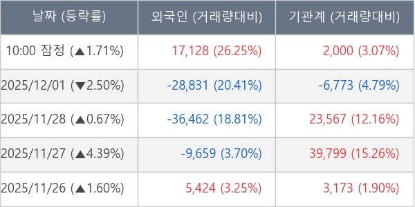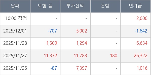 ※ 사모펀드 등 일부 기관의 순매매량은 표시되지 않음