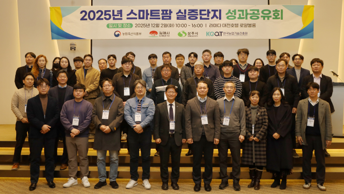 [세종=뉴스핌] 이정아 기자 = 한국농업기술진흥원은 2일 대전에서 스마트팜 혁신밸리 실증단지 입주기업 간 교류 활성화와 성과 확산을 위한 '2025 스마트팜 혁신밸리 실증성과 공유회'를 개최했다.