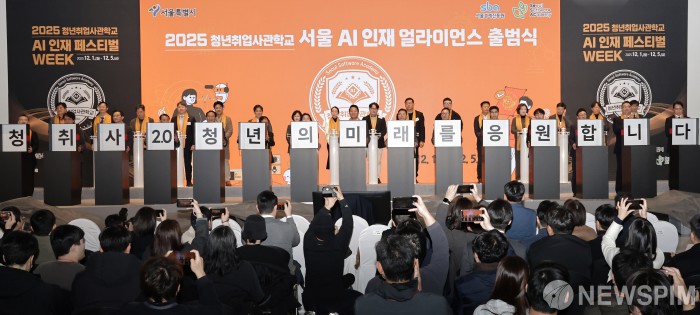 [서울=뉴스핌] 양윤모 기자 = 오세훈 서울시장이 2일 오후 서울 동대문구 DDP 아트홀에서 개최된 '2025 청년취업사관학교 AI 인재 얼라이언스 출범식'행사에서 퍼포먼스를 하고 있다. 이번 행사는 AI 시대에 필요한 역량을 쉽고 재미있게 경험할 수 있도록 기획된 개방형 지역 연계 축제이다. 2025.12.02 yym58@newspim.com