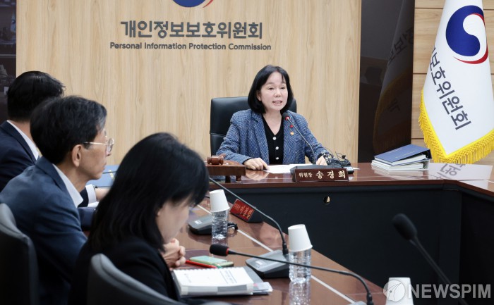 [서울=뉴스핌] 이길동 기자 =송경희 개인정보보호위원회 위원장이 3일 정부서울청사에서 열린 개인정보보호위원회 전체회의를 주재하며 모두 발언을 하고 있다. 2025.12.03 gdlee@newspim.com