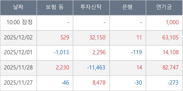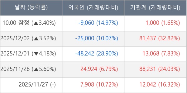 ※ 사모펀드 등 일부 기관의 순매매량은 표시되지 않음